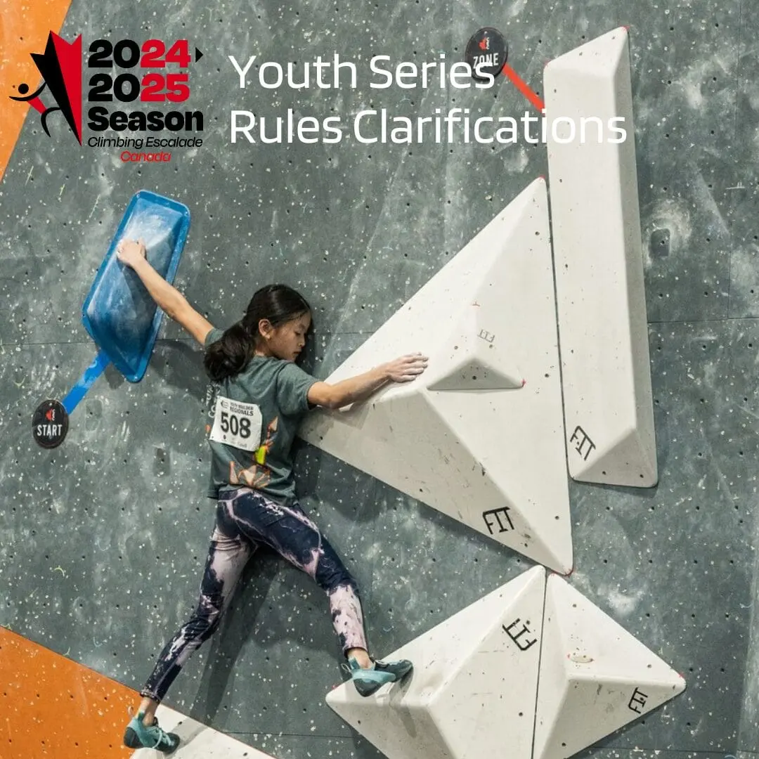 The 2024-2025 Youth Series will follow the 2024 IFSC Rules. Why? The IFSC publishes its annual rule updates in January, which falls in the middle of our Canadian domestic season. Since many coaches and athletes participate in the Senior Series under one set of rules, switching to a different rule set for the Youth Series would create unnecessary confusion. This approach has been our standard practice for many years.