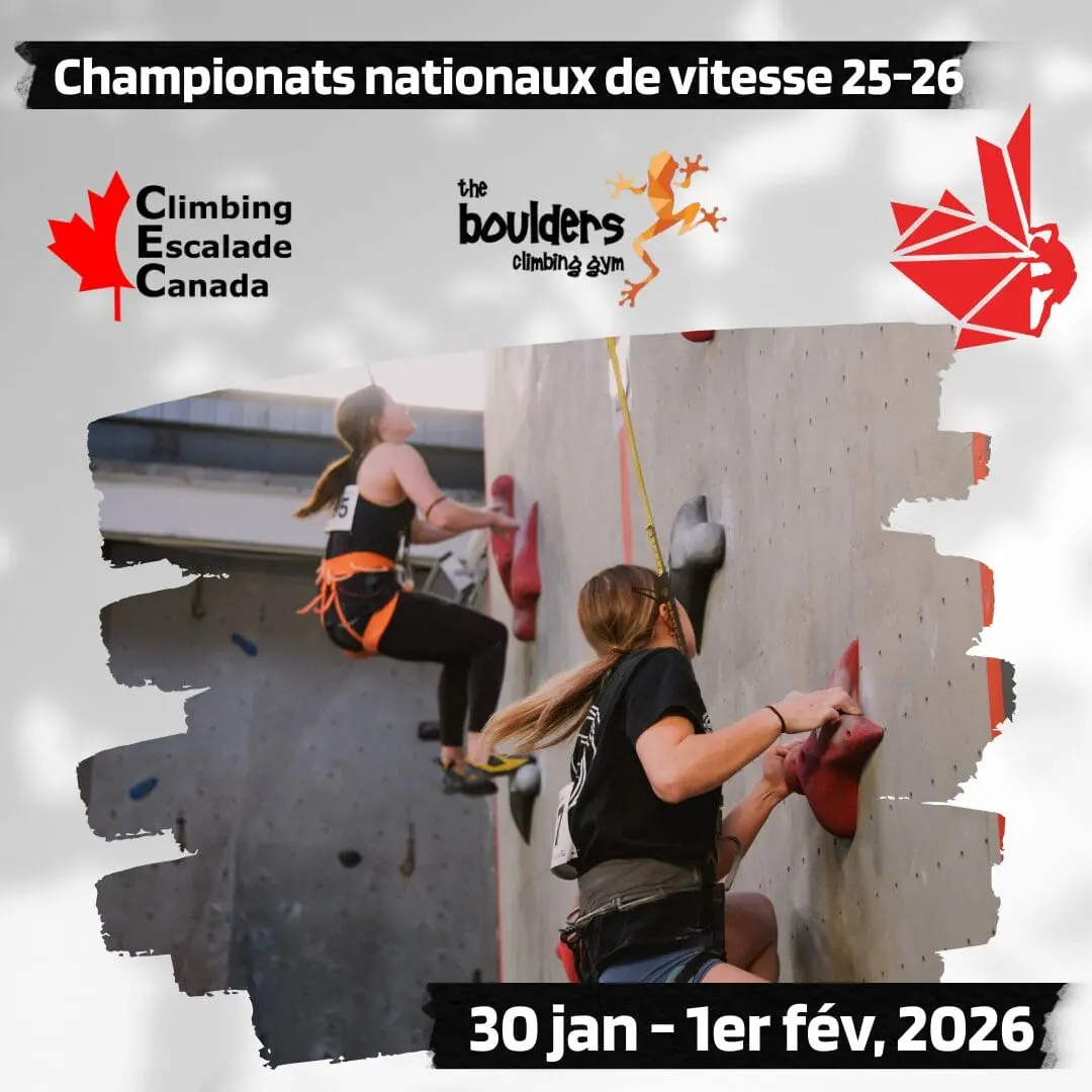 Pour accéder à la diffusion en direct et aux mises à jour de l’événement, visitez : Championats nationaux de vitesse 2025-2026 – Page Centrale d’Événement | Climbing Escalade Canada