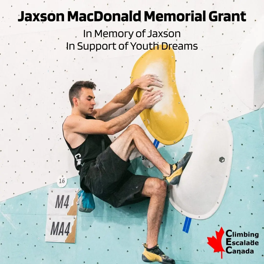 Climbing Escalade Canada (CEC) is honoured to support the MacDonald family in launching the Jaxson MacDonald Memorial Grant, a new bursary initiative created in memory of their son, Jaxson MacDonald. The MacDonald family approached CEC with the desire to give back to the climbing community and to support the next generation of Canadian youth athletes — and CEC is privileged to help bring this legacy to life.